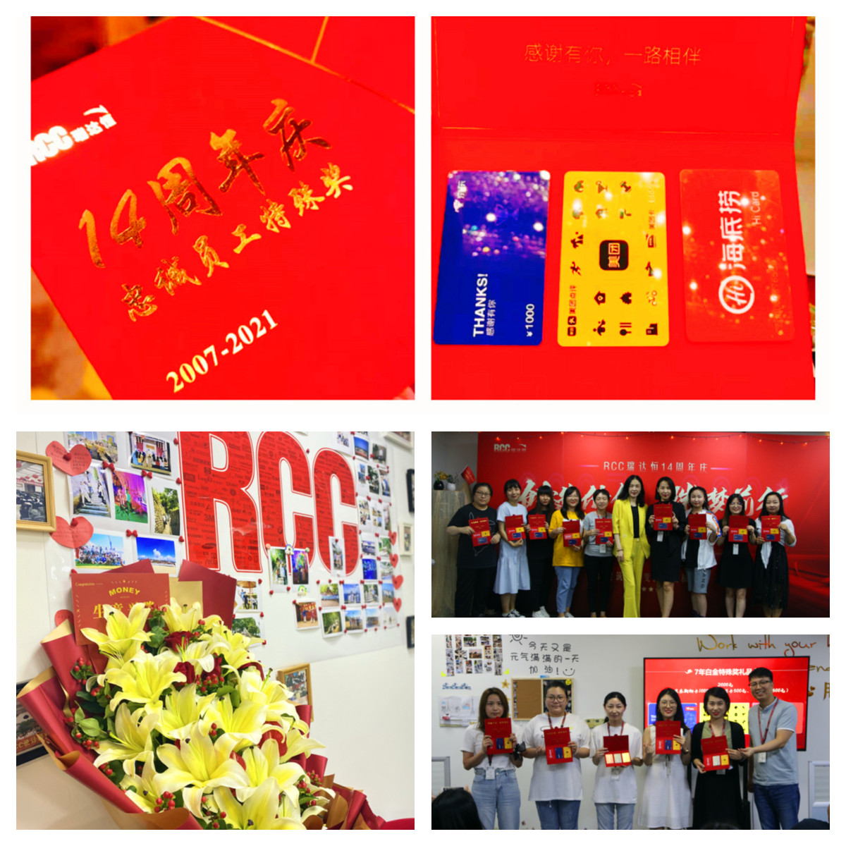 ? ? ? ? ? 只要是3年及以上的RCC老員工,每年公司周年慶都有一份特殊獎。今年的特殊獎依舊裝載了公司滿滿的心意,美團卡、京東卡、海底撈卡從衣、食、住、行都照顧到了!