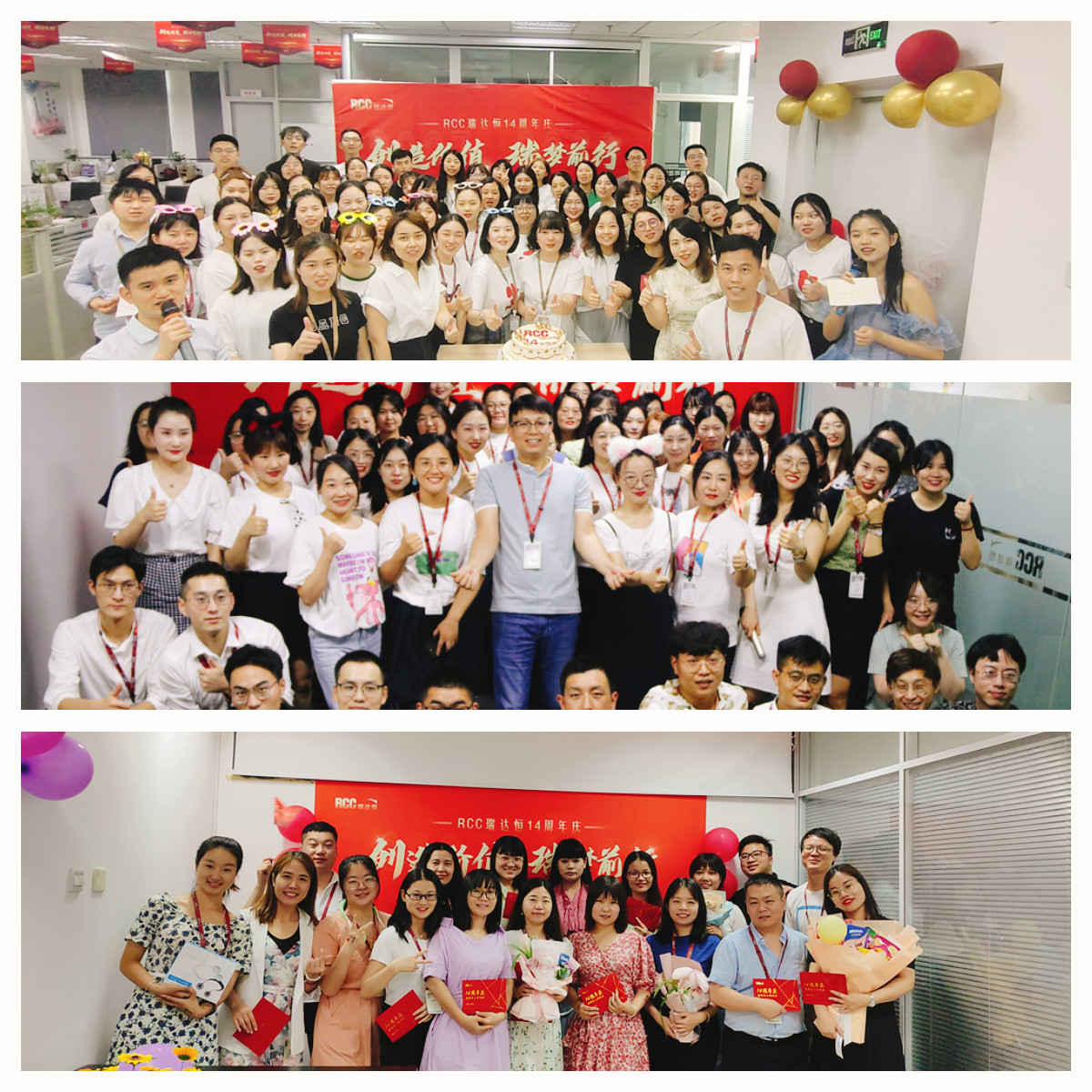 ? ? 7月18日,RCC瑞達恒全國12家分公司&辦事處,共同舉辦十四周年慶典活動。